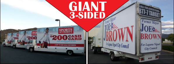 night life impact. We own the largest mobile billboards in California, with ad size of 10'5" X 22'8".